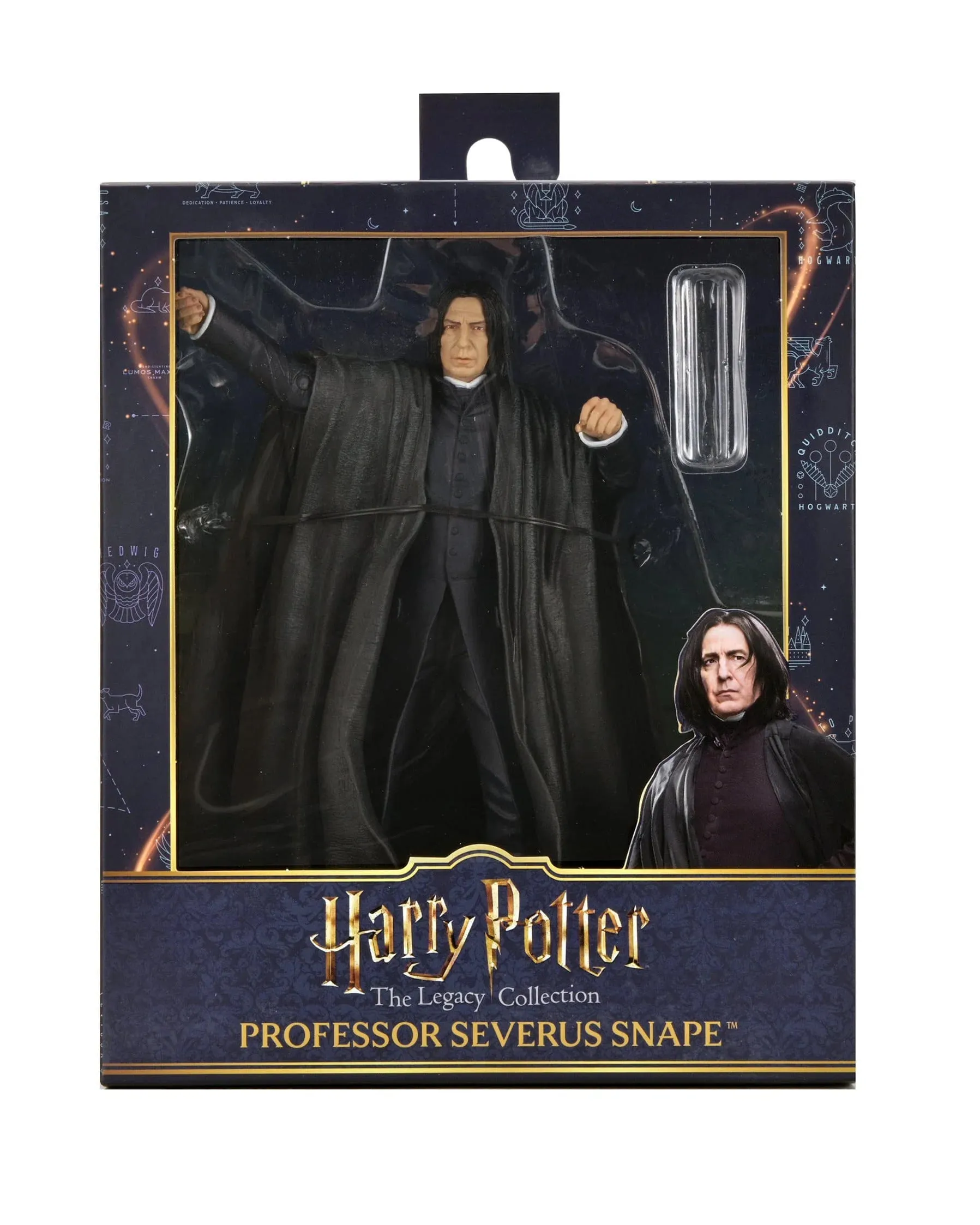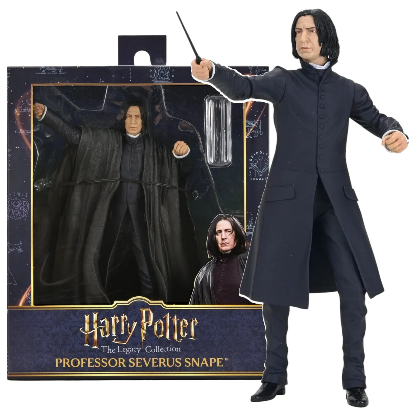 Эта 7‑дюймовая фигурка профессора Снейпа включает его волшебную палочку и чёрный плащ и поставляется в упаковке с окошком.